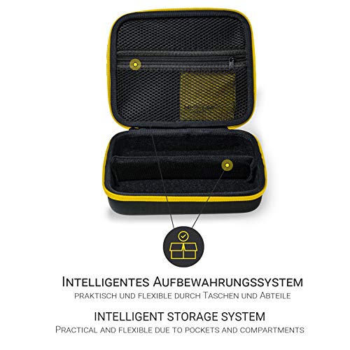 Specification: Hi-SHOCK 3D brillenetui Dual Case | Schokabsorberende harde schaal – Box brillen-etui met ritssluiting & accessoirevak voor 2 x brillen | Afmetingen 19 x 15 x 6,5 cm [EVA | gevoerd | zwart-geel]