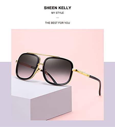 SHEEN KELLY Retro oversized pilot zonnebril vierkant metalen frame goud voor mannen vrouwen verlooplens